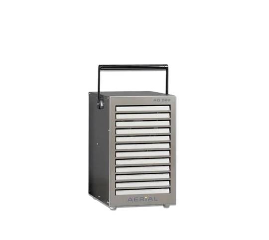 The Aerial AD 520 dehumidifier is a compact condensation-based unit designed to remove excess moisture from indoor air. It draws humid air into the system, extracts moisture through condensation, and releases dry air back into the space.
